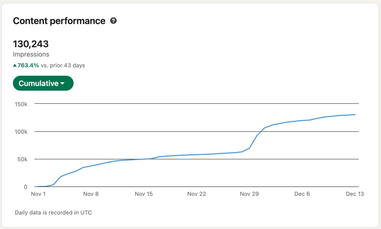 130K+ impressions in 43 days